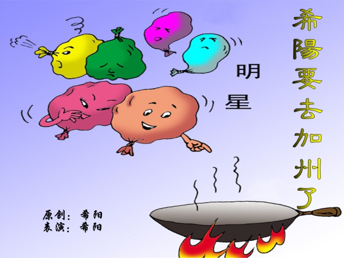 制貼:一唱 【金秋賀十月】的組織者鳴不驚人讓我出小品, 我把頭皮都抓破了, 還是想不出來什麼。 朋友們曾善意地批評過我好幾次了, “希陽老太, 你最近的小品可越來越不咋地了”。 嘿嘿, 我自己也知道啊。 所以這次就把我以前的小品翻出來,這個我覺得還能說的過去。覺得上當的朋友可別怨我哦, 我說了,慎入來着,嘿嘿. 給上山晚的朋友們一點這個小品的創作背景:三年前吧, 【中華情】將在加州演出,高山為此組織了節目,不少網友還專程赴加州參加演出。 儘管演出臨時取消了, 但這倒讓聚會的朋友們玩了個痛快。 希陽沒有去成, 心裡又嫉妒,又羨慕, 急火攻心, 晚上睡不着,白天盡做白日夢。 這不, 夢話來了。。。。 這個純屬燙剩飯, 大家就不用跟帖了,呵呵。周末愉快! |