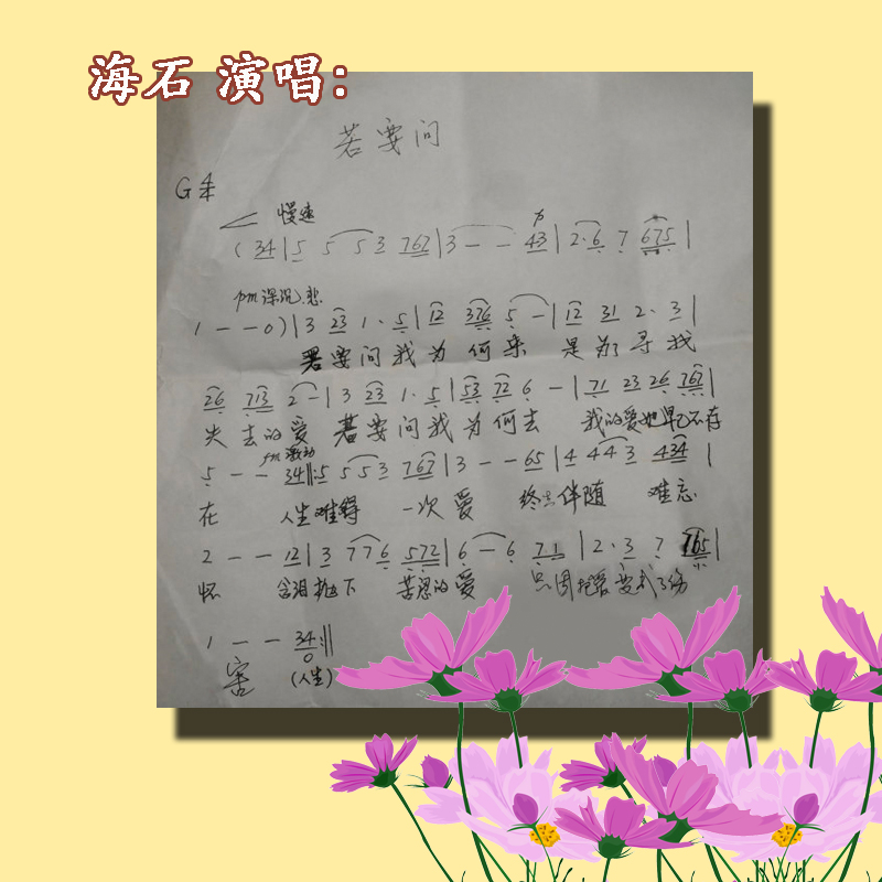 善和在国内的朋友委托她为一位癌症晚期病人制作了这首歌曲《若要问》,这首曲子是这位病人所谱写的,他酷爱音乐,喜爱作曲和唱歌,希望在人生最艰难的时刻常与音乐和歌声陪伴。在2010年善和推荐我完成了这首歌曲, 最近得知这位作者至今还顽强地活着,但已经不能进食,借高山举办原创活动将此歌贴出来跟大家分享,并祝福他早日战胜病魔!