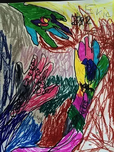 能够拥有前后重叠的空间观念,并懂得表现重叠的关系,至少要到Grade3/4之后。幼儿画画都是把物体一样一样安置在画面上。但是如果经过引导、观察并配合教具协助理解后,幼儿是可以画出重叠的感觉。