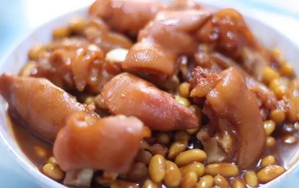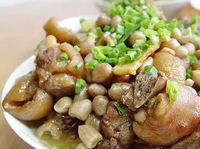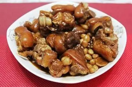 步骤:将猪脚爪及毛去掉,洗净,用刀划口,放入锅内,加花生米、盐、葱、姜、黄酒、 清水适量,用武火烧沸后,转用文火熬至熟烂,随量食用。