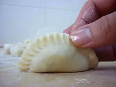 包入菜餡,捏成月牙餃
