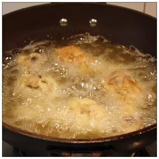 ▼6、锅里油热后,开中小火,炸至鸡腿成金黄色即可。
