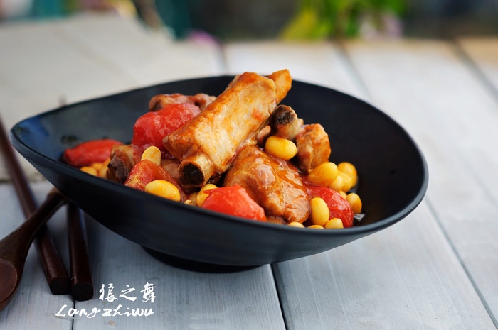 1、黃豆提前泡發。 2、豬肋排洗淨斬成長段。 3、炒鍋里倒入油,放入排骨段小火煎制顏色微黃後盛入到砂鍋里。 4、鍋里放入蔥段,生薑爆香。 5、倒入番茄醬,小火翻炒成濃稠的醬汁。倒入足量的清水,燒開。 6、盛有排骨的砂鍋放入泡好的黃豆,倒入燒好的番茄醬湯汁。 9、砂鍋小火燉40分鐘,燉至湯汁粘稠。 10、放入西紅柿塊,調入精鹽後小火燉5分鐘。 小貼士: 1、砂鍋一次倒入足夠的清水,如果中途需要添加水的話要加滾開的清水。如添加冷水,容易使正加熱的肉類遇冷收縮,蛋白質不易溶解,湯便失去了原有的鮮香味。 2、最後臨近關火時再放鹽,因為早放鹽能使肉中的蛋白質凝固不易溶解,湯汁濃度不夠。 3、不要放入過多的蔥、姜、料酒等調料,以免影響湯汁本身的原汁原味。 |