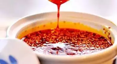 【制作】烧一锅热油(油要冒烟),关火,静置1-3分钟(降温,关键)。之后将热油徐徐倒入配好的辣椒粉里,边倒边用筷子搅拌辣椒粉(关键,容器下垫抹布,可防止容器随着动),务求均匀。油宁多勿少,制作完后应完全淹没辣椒粉