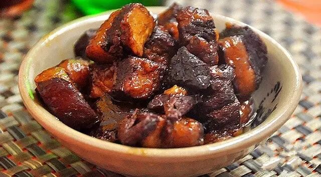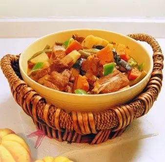 原料:五花肉,土豆,茄子,南瓜,豆角,洋葱盐,味精,黄酱,酱油,八角,桂皮。 1.将茄子切条,南瓜、土豆蒸熟后压成泥,洋葱切丝,豆角切段,五花肉切片备用。 2.坐锅点火到油,下八角、黄酱炒香,下入五花肉煸熟,再依次加入洋葱、茄子、扁豆,炖熟后将菜捞出,用汤汁炒匀南瓜泥与土豆泥,出锅前加入味精炒匀浇在菜中即可。