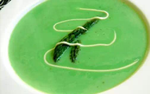 做法 1.蘆筍半斤洗淨切去根部,切大段;土豆一個去皮切小塊 2.大鍋水燒開,放入蘆筍,斷生變綠即可撈出,放入冰塊水中冷卻 3.另取小鍋一個,放入奶油一小塊融化,加入土豆稍攪拌,加入高湯兩碗,鮮奶油一碗 4.小火煮15分鐘至土豆熟透,加入鹽,黑胡椒粉調味 5.準備好攪拌打汁器,放入蘆筍,放入土豆及湯;打攪成糊狀 6.立刻倒入湯碗中,加入蘆筍尖做裝飾 7.若有打發好的鮮奶油,擠在面上裝飾更好