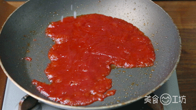 6. 锅里留少许底油,加入番茄酱,糖,少许水,盐和白醋。