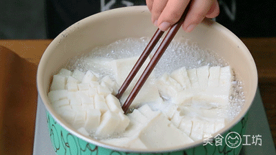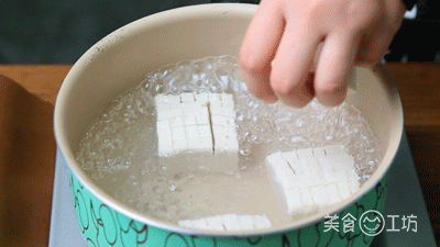 3. 锅中加水煮沸,焯至豆腐变形捞出沥干。