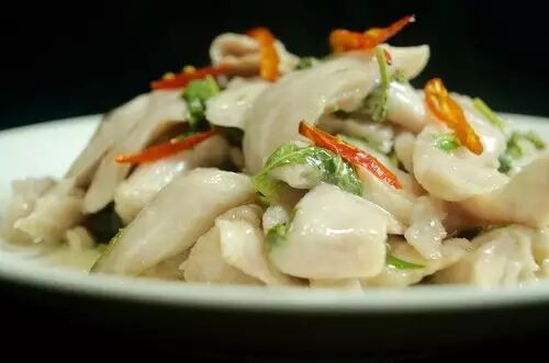 此菜中的鱼片是洁白舒展的,不能翻卷,所以滑油时温度不要太高。其次,此菜不是半汤菜,而是一道溜汁菜,盘中要有一层糟汁但又不能太多,色泽浅黄透亮。第三,此菜加热时间不可太长,否则糟香味容易挥发。