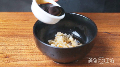 4. 蒜压成蒜泥,加入酱油、蚝油、香醋、盐、鸡精、白糖、香油调成料汁