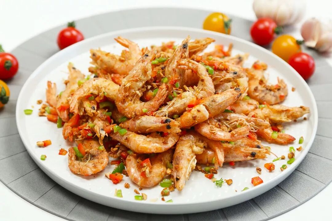 大虾这样做,好吃到连虾壳都不想放过!喜欢吃虾的速码!椒盐虾 虾400克青椒半个红椒半个大蒜半头椒盐5克料酒15克淀粉适量