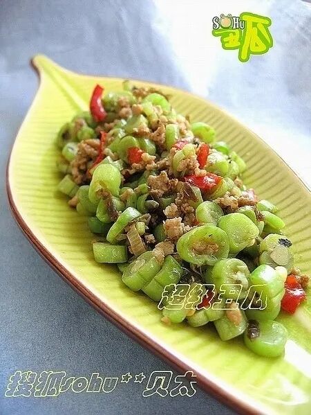 18、【榄菜剁椒四季豆】 原料:肉馅 四季豆 橄榄菜 剁椒 葱末 蒜末 料酒 酱油 盐 糖 鸡精 做法:
