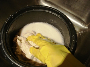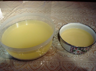 4、沉淀:将洗好的面浆水和搅好的面糊糊放置一夜,让面浆水和面糊糊充分沉淀,淀粉与水就彻底分离了,将面浆和面糊糊上面的水慢慢倒掉,留下沉淀物,将两个早倒在一起,加一点盐,充分搅匀。