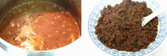 小时候妈妈在家做豆包时, 我站在边上眼巴巴地看, 妈妈见我那馋样, 会舀一大勺豆沙给我吃,很美味啊! 刚上读大学那会儿, 食堂伙食单调, 晚上除了打份儿肉末白菜粉,常常买两个豆包回来,第一个豆包是填肚子的-连皮带馅都吃下去, 第二个是解馋的-只吃馅儿,不吃皮。有其他室友效仿, 结果晚饭后, 我们桌子上躺着一块一块的包子皮。 我喜欢那会儿的有豆皮的豆沙, 不太甜, 有口感。 现在可以做一大盆豆沙给自己解馋,先用高压锅获节能锅把红豆煮软了,加些椰奶和冰糖(白沙糖也行),可以根据自己口味加糖, 边搅和边把水分基本收干即可。