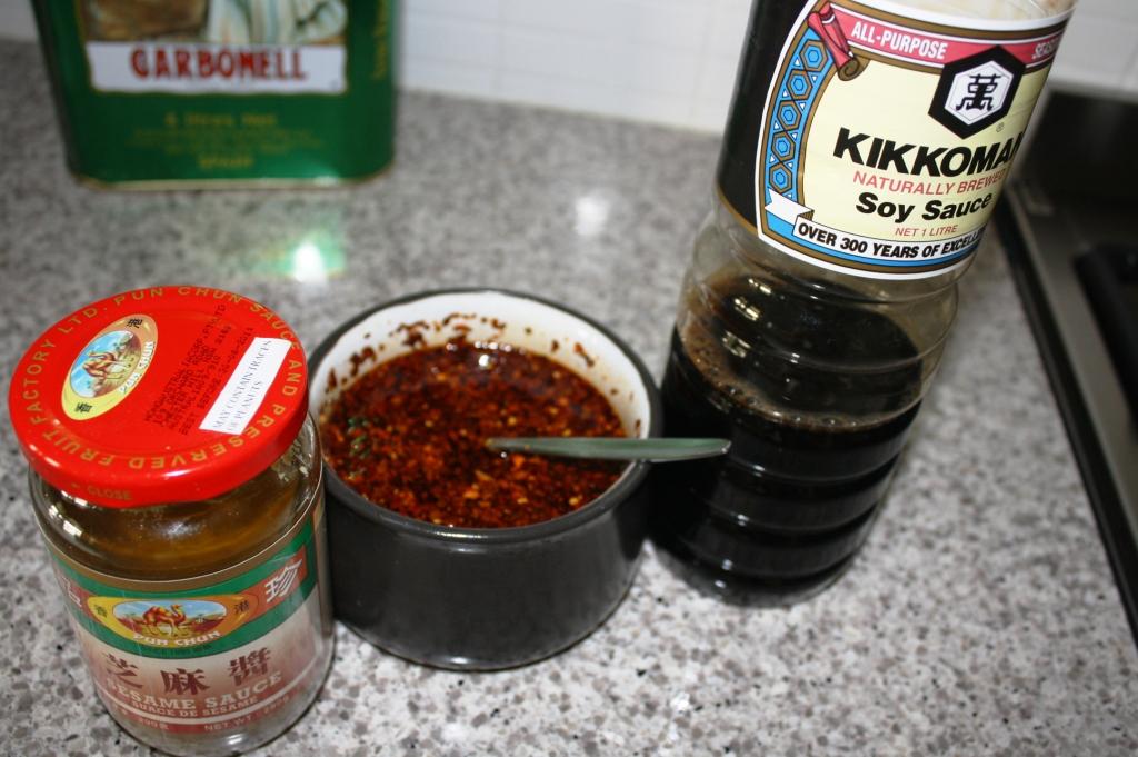 4. 突然想起阳半仙说:一勺芝麻酱胜过三块三文鱼。不能让这个知识浪费了,我然后给锅里加了下面这三样东西,完全由各人爱好定。