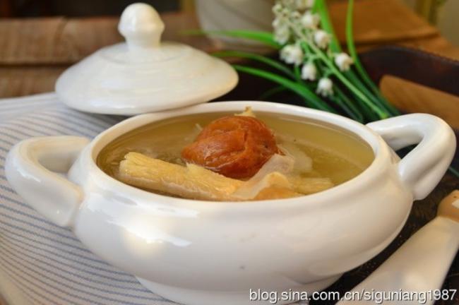 材料: 瘦肉、沙参、玉竹、老姜、清水、盐、蜜枣、百合