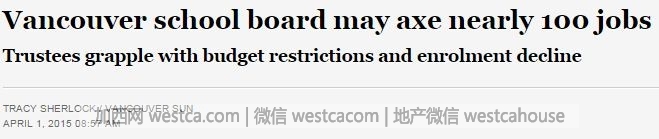 (加西網綜合)由於學生數量持續下滑,溫哥華教育局可能會因此裁員近100人,以幫助平衡日漸繁重的教育預算。 |