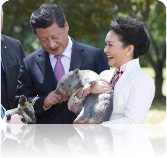 2015-03-06 来源:习近平和彭丽媛的行程获得了中国媒体的广泛报导。这对夫妇被拍到登上‘威灵顿山’,怀抱一只有“塔斯马尼亚魔鬼”之称的‘袋獾’宝宝,并被赠予一只‘薰衣草小熊’。 看着这些温馨的照片, 我们多么期盼 习主席能像爱他的夫人、爱他的女儿那样, 保护中国传统文化、 我们多么希望国家和政府, 在发展国民财富的同时, 能够像爱护自己的眼珠那样, 保护人们心底的神圣信仰, 若能如是,我之大幸矣。 【习近平(生于1953年6月15日),祖籍河南邓州,籍贯陕西富平,生于北京,中国共产党第五代领导人,第十八届中央委员会总书记。2012年11月中共十八届一中全会上当选中国共产党中央委员会总书记及中国共产党中央军事委员会主席。习近平是第一位在中华人民共和国成立后出生的最高领导人。】