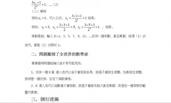 角谷猜想(3x+1猜想)是一个二阶逻辑问题,所以无法证明