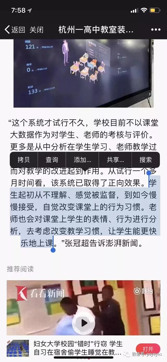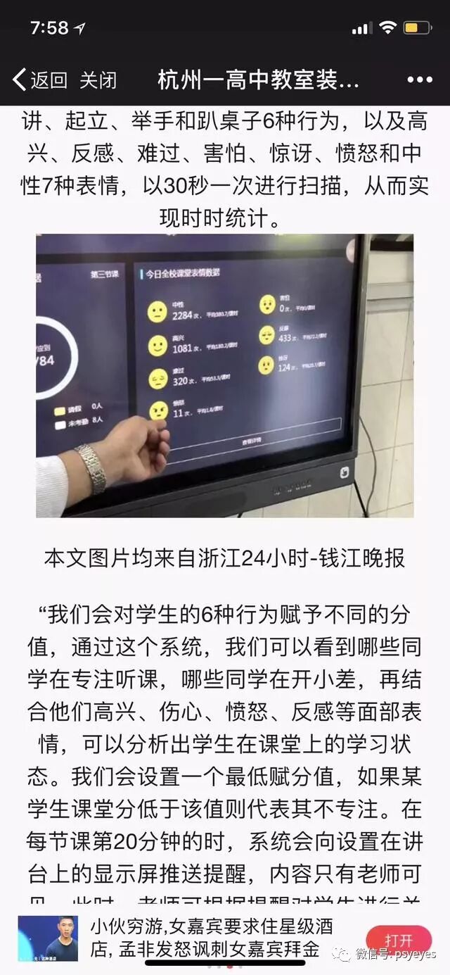 你怎么看杭州某中学智慧校园项目,可直接捕捉学生上课表情?