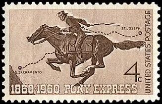 1853年,一位淘金客在洛杉矶报纸上发表对美国邮政署的咒骂文章:“谁能告诉我,美国邮政署究竟能做什么?无论是寄一封信还是收一封信,都要一个月以上,还经常寄丢!邮差倒是经常来,但他身上的邮筒也是经常空空如也,说什么信件还没下船,信件还没上船,信件还在海上游荡!”真是对低效的美国邮政的控诉啊。 小马快递的邮路,从密苏里州到加州 国营邮政系统这样低效,私人邮政能不能解决呢?淘金热期间,加州一些淘金客深感通信不便,私自开了一家快递公司,取名小马快递(Pony Express)。按说此举违法,幸好当时的邮政署还颇为开明,允许部分业务“外包”。 这家快递公司采用中国古代“驿站”的模式,邮路起点是加州圣克利门蒂,终点是密苏里州的圣约瑟,全程将近3000公里。这条邮路设有157个驿站,每天换马6至8次,通常只用10天才能跑完路程,比官方邮政的一个月省时不少。这段路程十分辛苦,只有彪悍的牛仔才能胜任,而他们卓著的信义和专业的精神也备受称赞。林肯当选总统传到西海岸,只用了7天时间。这在当时是一个壮举。 1960年美国邮政署发行了一枚“小马快递”的纪念邮票,纪念这家早期的私营快递企业诞生一百周年 它的邮费也比国营邮政昂贵,这些都不必说。小马快递的的最大价值是创新,并提供私人邮政的可能。如果竞争激烈,邮政系统的潜力还将被挖掘出来。可惜,这家快递公司经营一年多,就因南北战争爆发而夭折。战后美国开始大铺铁路网,大幅提高邮政效率,美国邮政署的地位更加稳固。