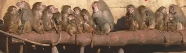 我想问各位一个问题──在这张图片中哪一只是老大?可以告诉我吗?哪个是老大?中间那个是吧,我们并不是狒狒,但是我们很容易看出来谁是老大。如果你我们生活在这个群体里面,或者我们生活在人的群体里面──人的社会群体有非常强烈的等级制度──我们很容易理解,是需要学会这些等级制度和相关的行为的,所以学习是蛮重要的。
