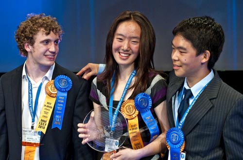为期一星期的“英特尔科学与工程大赛”(简称ISFE),14日在硅谷之都的圣荷西拉下帷幕。来自德州李察逊市的华裔高中生乔紫薇(Amy Chyao)和奥勒冈州波特兰市的樊业(Yale Wang Fan),分别夺得了今年大赛的两项最高特别奖——摩尔奖和英特尔基金会青年科学奖,并各自分享7.5万元和5万元的奖金。 今年第61届“英特尔科学和工程大赛”吸引了1611名来自世界50多个国家和地区的高中生。过去一星期内,这些未来的年轻科学家们分别以个人和集体的名 义,在圣荷西市议会中心展示了他们的入围研究项目,范围涵盖了计算机、工程、生物、化学、物理、数学、植物、动物、天文、微生物等领域。在经过了各领域的 专家学者严格筛选评比,以及参赛高中生的面试考核,最终于星期五公布了出各个项奖优势者的名单。 英特尔公司总裁奥特利尼(Paul Otellini)在颁奖仪式上对所有获奖者表示祝贺,并称无论是否得奖,所有参赛的高中生都将是攀登科学高峰的精英。 年仅16岁的德州华裔女生乔紫薇,以微观量子为基点,研发一种新的抗癌药物而摘得今年大赛的最高奖——摩尔奖的桂冠。对于获此殊荣,她激动地表示“极为兴 奋和意外!” 今年夏天,她将利用暑期在德州大学达拉斯分校继续从事药物测试对肿瘤细胞影响的研究。 18岁的樊业,是以量子物理数学的方式,解决在计算机科学领域最有难度的问题而获得青年科学奖。他希望研究的课题能够在实际生活中得到运用,包括快速搜寻 庞大数据库的资料、推广物理系统的研究等。 |