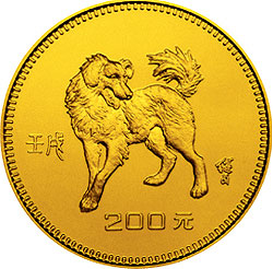 1982年壬戍狗年生肖金幣:直徑23毫米,重量8克。成色91.2%。瀋陽造幣廠,鑄造量5000。同圖案的銀幣獲當年國際最美銀幣獎。製作精良,圖案優美,大小乘手,軟硬適中,誠為製作書籤的上上選材料。