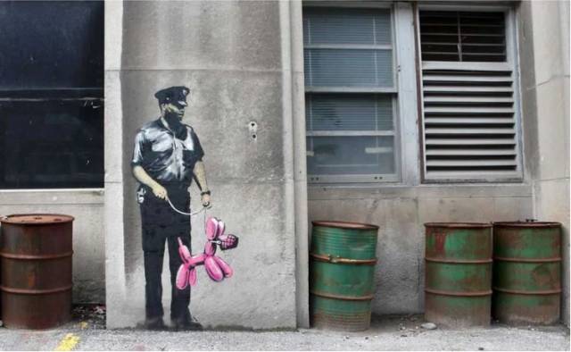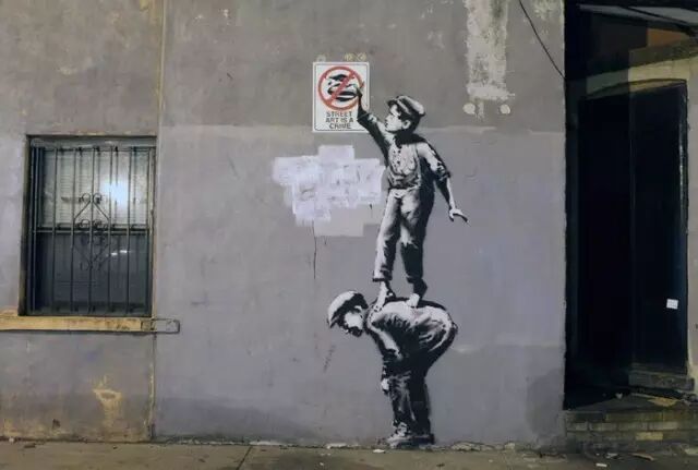 由于涂鸦活动的非法性,早年Banksy不仅被英国媒体称做“恐怖主义艺术”,他的“艺术”活动还常常受到警察打击和追踪,生活和“安全”都没有保障。这些年来,Banksy创作了大量以现实生活和反战内容为题材的作品,风格以黑色幽默著称。 每位艺术家的成功从无到有都是一个曲折的过程,Banksy也不例外。在他早年的艺术生涯期间(1992-2001),他只是一个徒手绘图的涂鸦艺人。2000年以后,当他理解模板可以大幅缩减制作时间后,便决定完全改为使用模板创作艺术。而Banksy声称令他改用模板的契机,是因为一次为了逃避警察追捕而躲在垃圾车底时,注意到车体上由模板刷上的数字编号。自从全面用上模板技术,很快地他便更广泛的获得周遭布里斯托(Bristol, England)和伦敦(London, England)艺术圈的关注。 2002-2003年是Banksy个人作品的展览期。2004年8月,Banksy制造了一大批的恶搞10英镑钞票,钞票上的英女皇头像被人民爱戴的戴安娜王妃头像取代,而“Bank of England”的字样则由“Banksy of England”代替。 当美国著名流行歌手克Christina Maria Aguilera把维多利亚女王的原画,连同另外两幅Banksy画作以25,000镑购入之后,Banksy的艺术作品拍卖纪录于2006年10月19日创出新高。然后在一个拍卖会上,Banksy一帧绿中挂红的《蒙罗丽莎》变调之作又以57,600镑被有心人投得。 12月,伦敦CNN国际新闻网络的专栏作家开始称这股旋风为“Banksy效应”,来形容在他个人的成功背后,以往总是寂寂无闻的一众街头艺术家也终于渐渐引起社会上广泛的注目。 Banksy可谓是艺术界的传奇人物,他的作品也总是以极高的价格被拍卖,并广泛流传着。 没错,这个墙就是真实的 墙 不过墙上有一些 东西 这些【浪迹】是英国涂鸦艺术家Banksy(不要问Banksy是名还是姓,没人知道)的作品,它们分散在伦敦,巴黎,巴塞罗那,硅谷,底特律等各城市的墙头小巷。 从14岁开始涂鸦至今,Banksy从未在公众面前公开过自己的身份、长相。 警察,儿童,老鼠,是他作品中出现最频繁的形象。显然这和涂鸦的创作过程脱不了干系:月黑风高,拎着喷漆罐、带着口罩的Banksy开刷了。这个时候埋头苦干是万万不能的:必须左顾右盼,一旦碰到巡警,骑上摩托车就跑——简直像在看间谍片。 第二天,墙上就出现了这些: 神经警察和小姑娘▼ 真是够了。。▼ 涂鸦并没有什么卵用▼ Banksy 会咬人▼ 没人按赞▼ 你有多爱纽约。▼ 泡汤的感觉▼ 油漆工其实是作品的一部分▼ 在Banksy特别喜欢“光顾”的那些城市,市长们是不高兴的:“不觉得这样破坏别人财产或公共财产的行为能称为艺术。” 作品被覆盖、抹除,这些Banksy并不在意,但他也表达过自己的立场: 既然Banksy一直匿名创作,他怎么还是就火了? 2003 年英国泰特美术馆,Banksy趁四下无人把自己“作”的一幅画粘在一件名作旁(以挑战“艺术权威的虚伪”)。没有一个博物馆的工作人员发现任何问题,直到B本人爆料。同样被恶搞若干日才反应过来的,还有纽约大都会艺术博物馆和巴黎卢浮宫。 “出镜”后的Banksy,作品被博物馆收藏,被高价拍卖,追随者们搜寻疑似Banksy的作品并费力挖掉整块墙。Banksy在自己的网站上吐槽:“真不敢相信,你们这群神经真的会买这些垃圾。” Banksy的公共作品拍价30w英镑▼ 除了涂鸦,Banksy还干过的事情有,联合50多个艺术家,把英国一个废弃的主题乐园改造成暗黑版主题乐园Dismaland: 迪湿尼乐园毁童年,门票3英镑,快看啊!▼ 反正我是不想去。 如果你确实想看看Banksy的【浪迹】▼ Banksy: 事实上,人群是最有趣的一件事;观众就是点睛之笔。这些现实生活中的玩笑,当你在它后面摆 pose 或者做鬼脸,并且传给你的朋友,那才行。 看脸时代,不露脸的Banksy赢得漂亮。 最后 假如街头没有城管 所有艺术家的想象都将变成现实 你可以无拘无束的发挥自己的原创 成就一个色彩斑斓的乡村 就连街道都拒绝平庸单调 支持用艺术改变乡村 周末愉快! |