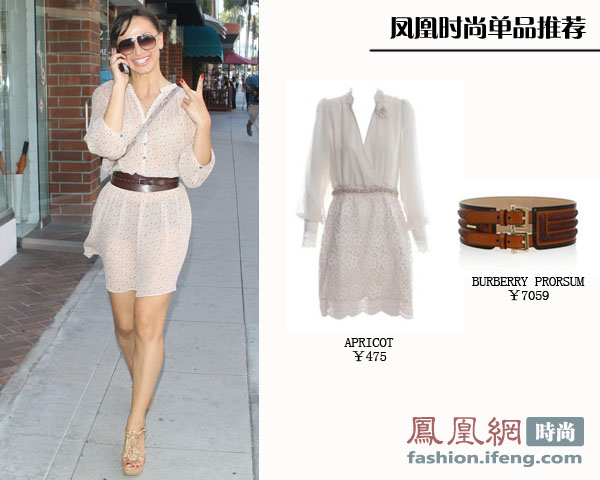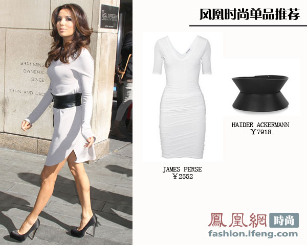 穿白色的長袖連衣裙凸顯出伊娃的優雅氣質,黑色蜂腰式寬腰帶別具設計感,打造完美曲線,並且黑白搭配的經典是永遠無法超越的,腳上的黑色恨天高更是增色不少,讓氣質更加出眾。