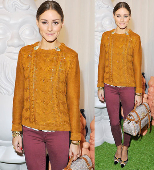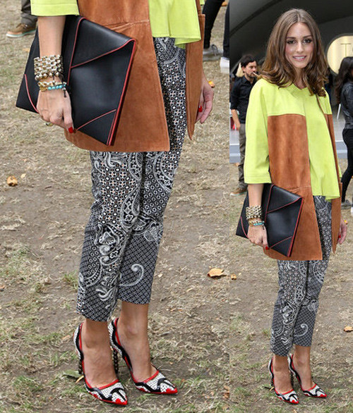 ![]() 上裝:Simonetta Ravizza 螢光色如何入秋?利用麂皮或羊毛等明顯季節特色的材質來搭配,就可以有全新的換季感。繽紛高跟鞋也不要錯過。 ![]() 外套:Dior 萬能搭配物件毫無疑問是手腕上的金表,出現在任何搭配上都好看。 毛衣:BB Dakota 最妙的是她別在毛衣上的“胸針”,如果沒看錯,應該是對耳環吧。 在同一天,Olivia換了另外一身行頭,鞋子、手鐲和耳環胸針都沒換,翠綠嫩黃真醒目。 長裙:Reiss 腰帶:Hermes 高跟鞋:Valentino 平價貴价的混搭之作,俏皮的腰帶打結一定要學起來! |