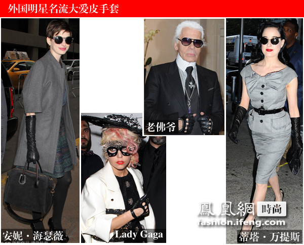 冬天想保護雙手?防範措施必須做好,不是塗個護手霜就完事兒了。別高估了手上皮膚的禦寒抗干能力,出門還是戴雙手套更靠譜兒。今冬最流行的要數皮手套,從繽紛的顏色到多變的款式,明星們都來幫你試了一把! ![]() 范冰冰、蕭亞軒、胡兵、趙薇演繹皮手套 現在的手套不僅有禦寒護手功能,人們追求更多的是其裝飾效果。因此,選皮手套是有學問的,如果你怕出錯,直接挑黑色即可。不論是長款還是短款、不論你的衣服是什麼顏色,絕對百搭!像型男胡兵這樣手套與胸口手帕相匹配的,顏色又比較特殊的,不推薦大家嘗試,搭不好就容易鬧笑話。女生亦可嘗試大紅色,活潑又性感。 ![]() 安妮、Gaga、老佛爺、蒂塔演繹皮手套 這組就是一水兒的黑皮手套了!從“雷神”到老佛爺、從淑女名媛到性感女郎,黑色皮手套滿足了所有人的追求。看來,皮手套必備,黑色皮手套更是志在必得啊! ![]() 實用又潮流的皮手套推薦 給大家推薦一些皮手套,有潮到帶鉚釘的,也有看着就舒服的正常款。有必備的黑皮,也有同樣正統的棕色手套,還有女生可大膽嘗試搭配的紅色!今冬,為自己收一雙皮手套吧!成為當人不二的潮流教主! |