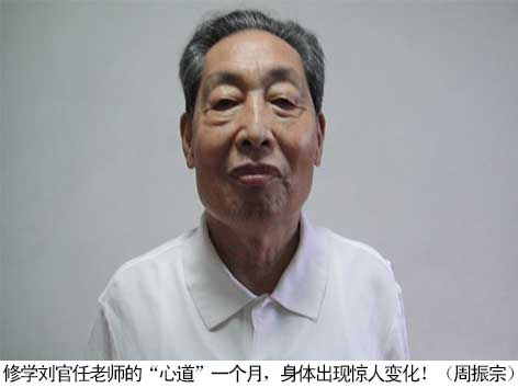我叫周振宗。我是6月1日注册“心道”教学网,6月2日进入“心道”教学网系列二学习的。从那以后,我每天都怀着对刘官任老师无比恭敬的心情,收看刘官任老师的“心道”教学网讲法视频从不间断,而且每次收看我都按着要领全身心地听、全身心地看,全身心地和刘官任老师互动,无私忘我,只管耕耘不管收获。没想到的是,一个月的时间我的身体发生了很大变化。