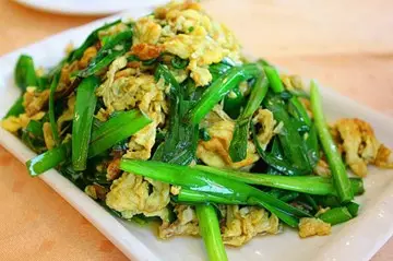 1. 治阳痿 对男人来说,韭菜可是天然“伟哥,”韭菜益精壮阳的两种做法:①韭菜粥:鲜韭菜50克,韭菜籽10克(研细末),粳米100克,细盐少许。先煮粳米为粥,待粥快熟时加入韭菜(洗净切断)或韭菜籽末、细盐,稍煮片刻即成。功能:补肾壮阳、固精止遗、健脾暖胃。②韭菜炒鸡蛋:新鲜韭菜100克,洗净切碎,鸡蛋3只(去壳),同切碎之韭菜捣匀,用素油、食盐同炒至熟佐食。功能:温中养血、温肾暖腰膝。 2. 治白带 醋煮韭菜籽焙干研末,炼蜜为丸。空腹以酒送服,每次30丸(丸如梧桐子大)。 3. 治血崩 韭菜5两,煮糯米酒服之。 4. 治子宫脱垂 韭菜半斤。煎汤熏洗外阴部。 5. 治产后血晕 韭菜(切)入瓶内,注热醋,以瓶口对鼻。 6. 治孕吐 韭菜汁50毫升,生姜汁10毫升,加糖适量,凋服。 7. 治鼻出血 韭菜捣汁1杯,夏日冷服,冬天温服;阴虚血热引起鼻衄,用鲜韭菜根洗净后捣烂堵鼻孔内。 8. 治翻胃 韭菜汁二两,牛乳一盏。上用生姜汁半两,和匀。温服。 9. 治慢性便秘 韭菜有“绿色蔬菜之王”美称,含有丰富的纤维素,每100克韭菜含1.5克纤维素,能刺激肠道,增强肠蠕动,有利于粪便的形成,及时将体内过剩的营养物随粪便排出,有利于预防肠癌和防治习惯性便秘。另外,这些纤维还可以把消化道中的沙砾、头发、金属屑包裹起来,随大便排出,故有“洗肠草”之称。也可用韭菜根叶捣汁1杯,温开水加少许酒冲服。 10. 治赤痢 韭菜一把去梢取汁,和酒l盅,名日“韭汁酒”,温服。 11. 治痔疮 韭菜不以多少,先烧热汤,以盆盛汤在内,盆上用器具盖之,留一窍,却以韭菜于汤内泡之,以谷道坐窍上,令气蒸熏;候温,用韭菜轻轻洗疮数次。 12. 治脱肛不缩 生韭一斤。细切,以酥拌炒令熟,分为两处,以软帛裹,更互熨之,冷即再易,以入为度。 13. 治顽癣 韭菜焙干,研细末,猪油调和敷患处。 14. 牛皮癣 可用生韭、蒜各30克,捣烂如泥,烘热后用力擦患处,每日1次,连续数日。 15. 治过敏性皮炎 韭菜捣汁外涂,日数次。