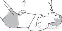 ① 平躺在地上,弯曲双膝,双脚平放在地面上。