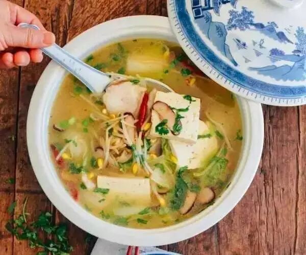 冬天喝汤是最滋补的,骨汤补钙的功效特别好~ 材 料 : 排骨(大骨)、莲藕、枸杞、生姜、醋、盐适量。 步 骤 : 1. 洗净食材,莲藕切块,过清水,排骨切块,焯水后捞出。 2. 砂锅内放入焯好水的排骨、枸杞,加冷水,汤水开后转小火。 3. 一小时后加入莲藕,熟透之后,放少许醋和适量盐即可。 炖汤最好用砂锅,因为砂锅可以最大限度保留钙质和各种营养成分。 最好用大骨头炖汤,因为钙质更多,如果不喜欢大骨头就用排骨也是可以的~ 豆腐滑鱼 豆腐中的高蛋白很多,钙质丰富,和鱼一起炖能达到最好的补钙效果! 材 料 : 老豆腐、鱼片、白菜、豆芽、香菇、姜片、蒜瓣、葱花、香菜、干辣椒、胡椒粉、盐、醋适量。 步 骤 : 1. 洗净食材,鲜菇切片,姜蒜切片,葱花香菜切段。 2. 姜蒜爆锅,下香菇翻炒,然后加入干辣椒、豆芽一起翻炒。 3. 锅里加水,烧开后放入豆腐、白菜同煮,调入胡椒粉、盐、醋适量。 4. 再次开锅之后,用筷子把鱼片一片一片地铺在汤上,几分钟就熟了~ 鱼片下锅之前,可以先用蛋清、盐、淀粉、料酒腌制一下,味道更鲜美~ 想吃豆腐补钙又嫌麻烦的话,平时拌一个嫩豆腐也是可以的,简单又美味! |