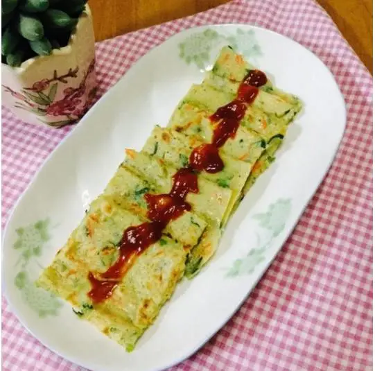 食材:芹菜 (一大把)、面粉 (300克)、胡萝卜 (半根)、鸡蛋 (三个)、盐 (适量)、清水 (适量)。