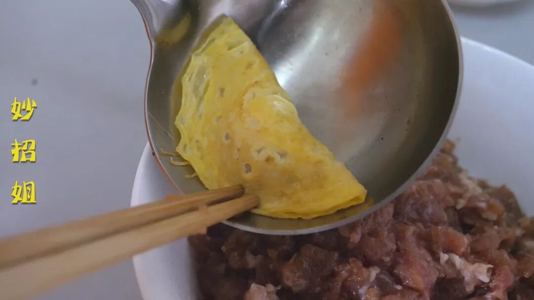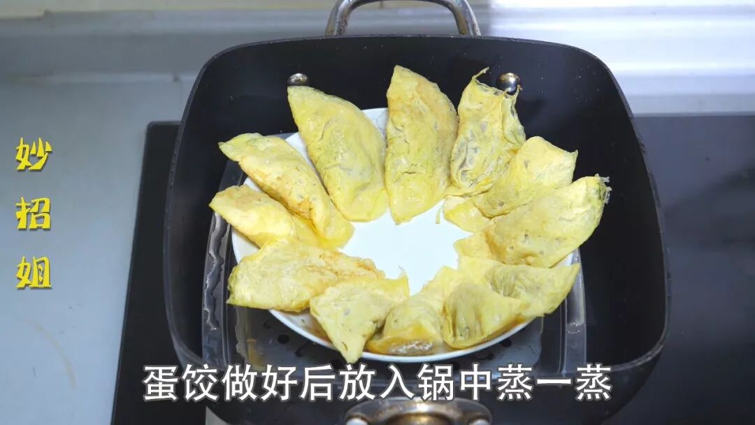 哈嘍大家好,我是妙招姐。蛋餃很多人見過也吃過,但都不知道是怎麼做的,那麼今天妙招姐就手把手來教大家怎麼製作美味的金黃色蛋餃 首先大家根據自己的口味調好肉餡,然後我們打入幾個雞蛋在碗中,再將雞蛋打散 蛋液攪拌均勻後,我們再準備一個大一點的湯勺,然後把勺子放在燃氣灶上稍微加熱一下,燃氣灶的火要開刀最小哦 接着在上面刷上一層食用油,大家也可以直接用豬肉皮在上面蹭幾下,效果也是一樣的 油刷好後,在勺子裡加入兩勺的蛋液 然後再把勺子放到燃氣灶上這樣一邊轉圈一邊烤 蛋皮成形後,我們再放入肉餡,然後用筷子把蛋皮這樣翻過來包好,邊緣壓一壓 那麼這樣一個蛋餃就做好了,非常漂亮吧,另外油不需要每次都刷,連續做好幾個,再刷一次油就可以了 蛋餃做好後放入鍋中蒸一蒸,鍋中水開後蒸15分鐘左右就可以吃了 另外這裡很多人會擔心,蛋餃會不會開口,這個大家完全可以放心,不管你是用來下火鍋還是像餃子一樣煮着吃,蛋餃都不會開口的 |