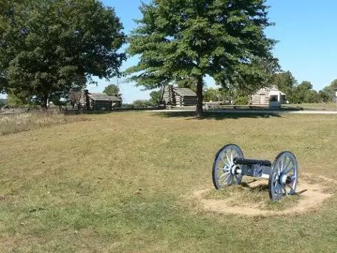 9月29日上午,李兄开车带我到了Valley Forge,Valley Forge离费城大概30英里。当我第一眼看到Valley Forge这一大片山区时,我的感觉竟然是在宁静中感受到的大气。晴空万里,几片浮云飘在天边,蓝天下,一大片树林郁郁葱葱,还有野草,在微风中轻轻地摇动。有几个小木屋,很是厚重,用圆圆的大木头垒起来的,木头的颜色黑乎乎的。穿过一片草地,透过几棵大树露出来的一座两层的小楼,就是当年的司令部,华盛顿就居住在那里。