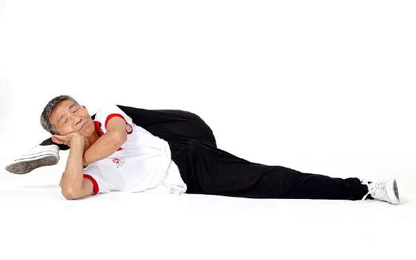 73歲的Duan Tzinfu在展示他驚人的柔韌性。他60歲時才開始訓練,在那之前的40年,都在玻璃廠工作,走都走不好,彎下腰連腳趾都碰不到。