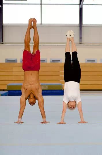 86高齡的Johanna Quaas(右)是真正的體操明星。雖然說她練習體操已經有30年,但也是56歲才開始的。