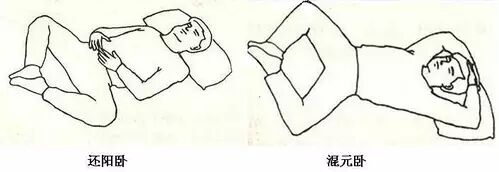 還陽臥:身體自然平躺,髖關節放鬆,腿似環,兩腳心相對,腳後跟最好直對着會陰(如果能頂着會陰最好)兩手心放於大腿根部附近,掌心向着腹部。仰臥由於着床面積大,壓迫力較小,身體更容易放鬆,身體的放鬆加上一定的姿勢,可以很快的把陽氣和腎氣充盈起來。腎陽氣相當於命門的真火——一個生命力的大小關鍵就是看命門的陽氣是否充足。擺這個姿勢,就是為了更有利於腎陽氣的充足。此式補腎的作用明顯。
