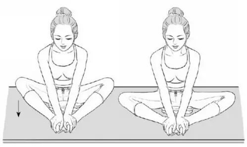 坐下來,屁股下用一個折成兩個手掌厚的毯子墊一下。然後曲膝,使腳心相對,腳掌併攏,腳跟儘量往裡靠。雙手抓住腳尖,膝蓋向兩側打開,儘量往地上貼,這就是“蝴蝶式”了。做這個動作的時候,脊背要挺直,雙膝有節奏地向兩邊地板振動。
