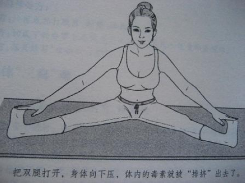 坐在床上,右腿向前伸直,左腿彎曲平放,雙手交疊,壓在大腿根部,沿着大腿內側肝經的位置,稍用力向前推到膝關節的,反覆推動,四五十遍,然後換另一隻腿同樣的手法。可以隔着衣服,如果是在皮膚上的話就塗些潤膚油,效果更好。每晚推一推,疏肝理氣,活血化瘀,去肝火,保養婦科,改善面部氣色。