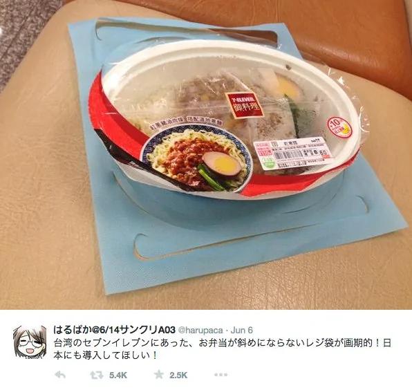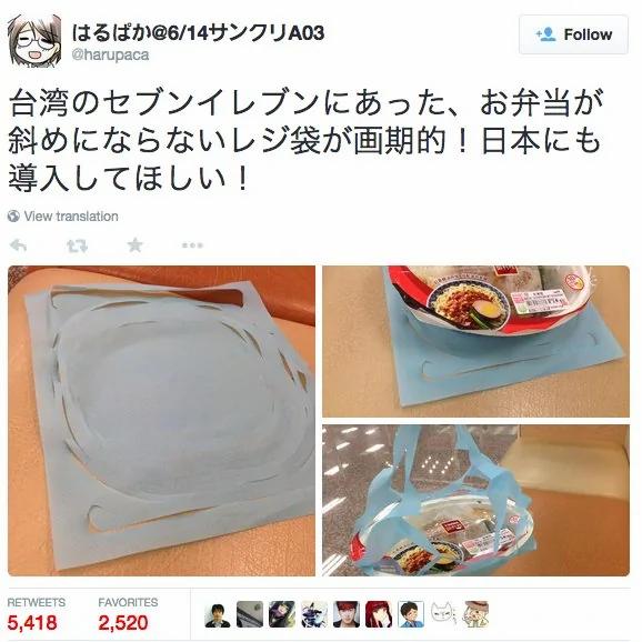 日本網友@harupaca這幾天到台灣旅行,對台灣便利商店微波便當的提袋格外喜歡。他在推特上分享照片:〝在台灣的7-11購買午餐,居然發現超強的便當袋,這樣拿着便當就不會傾斜,好想介紹到日本請求導入。〞