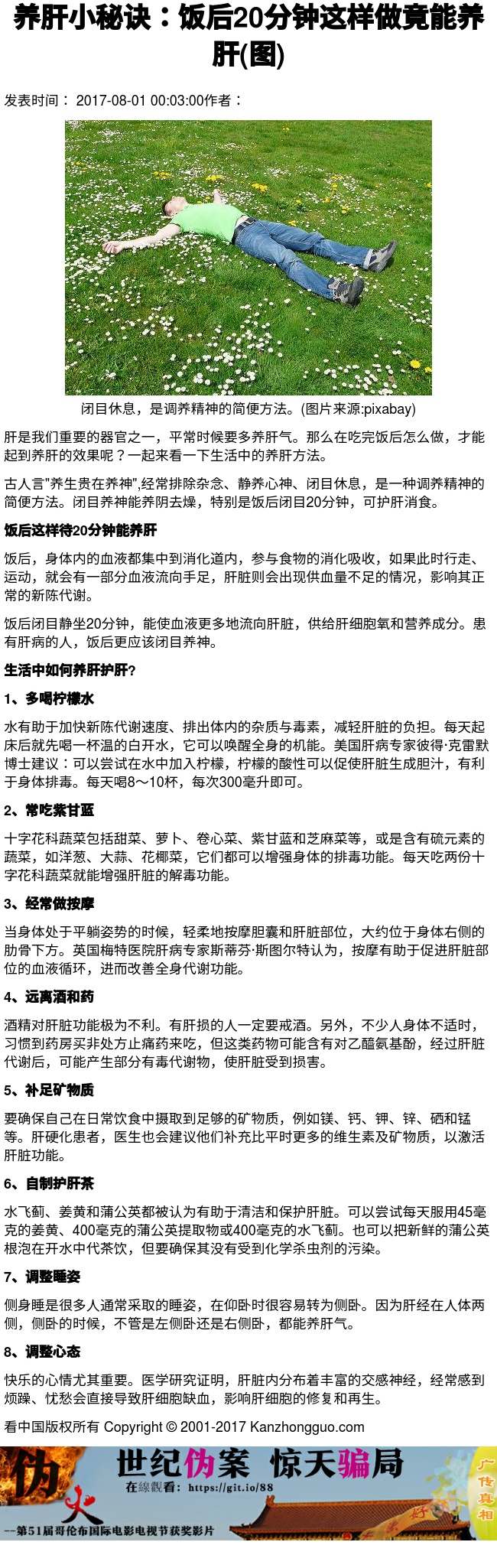 養肝小秘訣:飯後20分鐘這樣做竟能養肝(圖)