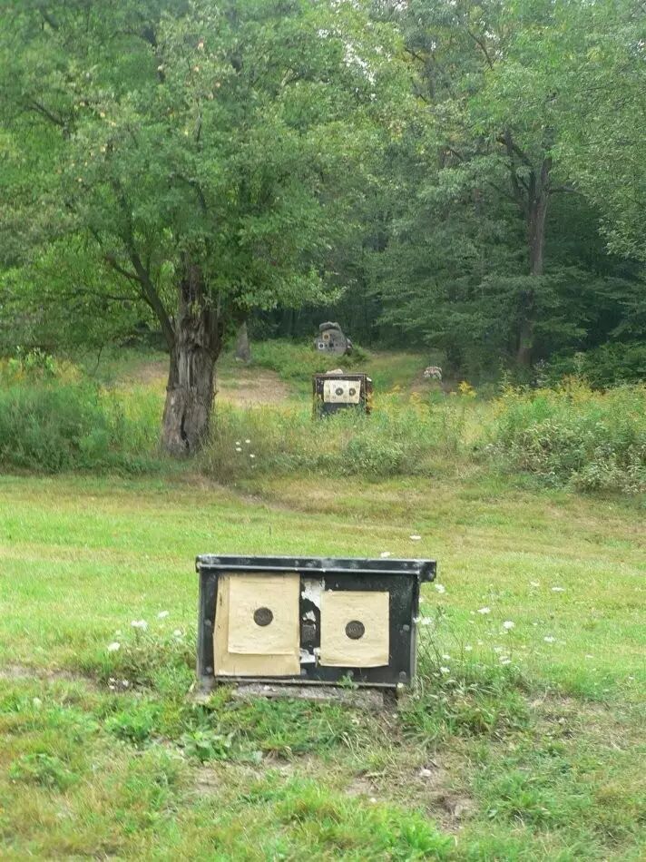 这座房子是二十来年前盖的,老人说,我自己找的建筑商,花了十二万。 他还给我介绍了他的库房,那个库房的历史,我忘记了。我的注意力被他家的靶场所吸引,三个靶子成了一线,每一个的靶子上都有许多枪眼。老人说,有时我打打靶子玩,自己打,或者邀请几个老朋友一起打。