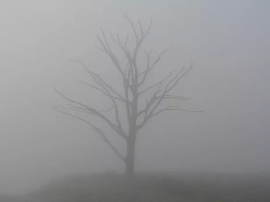 路上一个人也没有,连狗叫声也听不到,雾散开了一点后,出来了一个朦胧的太阳,玉米地朦胧,大豆地朦胧,大树朦胧,连野草也朦胧。朦胧中看到前面一个动物,像小狗,我走动的脚步声大了一点,它走到了路旁的玉米地里,看来,它是狐狸。