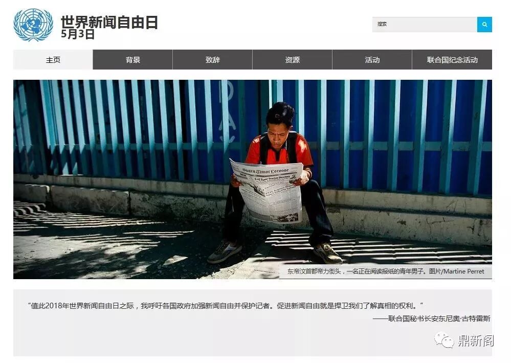 “我们的自由有赖于新闻自由,限制这项自由,即会失去这项自由”。1786年,托马斯·杰斐逊在致力于美国独立时写下的这句话,今日读来依然仍掷地有声。在今年世界新闻自由日的致辞中,联合国教科文组织总干事奥德蕾·阿祖莱也将这句话放在了开头。 今天是第25个世界新闻自由日,2018年世界新闻自由日的主题是:“让权力接受监督:媒体、司法与法治”。 联合国官网截图 根据教科文组织大会的提议,联合国大会于1993年12月宣布将《温得和克宣言》通过的日子——5月3日设立为“世界新闻自由日” 促进新闻自由就是捍卫我们了解真相的权利 今年,联合国秘书长安东尼奥·古特雷斯在致辞中表示: “新闻自由对于为所有人实现和平、正义和人权至关重要。 新闻自由对于建设透明和民主的社会以及保持对掌权者问责不可或缺。 新闻自由是可持续发展的关键。 记者和媒体工作者揭示当地和全球挑战,讲述需要讲述的故事。 他们为公众提供的服务弥足珍贵。 需要通过、实施和执行保护新闻独立、言论自由和知情权的各项法律。 必须起诉针对记者的犯罪行为。 值此2018年世界新闻自由日之际,我呼吁各国政府加强新闻自由并保护记者。 促进新闻自由就是捍卫我们了解真相的权利。” 联合国教科文组织总干事奥德蕾·阿祖莱则在致辞中指出:“今年所确定的主题,正可以促使我们去思考媒体与司法、媒体与法治国家之间的关系,同时也推动我们去审视与线上新闻自由相关的新挑战。 新闻自由如同任何一种自由,永远不会一劳永逸。要通过数字渠道发展知识和信息社会,就需要提高警觉性,以使透明度、自获取和质量方面的重要标准得到保障。” 近年以来,全球新闻记者面临的境况并不乐观,据新华网报道,国际新闻工作者联合会年末汇总数据显示,全球至少81名记者在2017年殉职,250名记者受到拘禁或关押,针对媒体从业人员的暴力和骚扰大幅增加。国际新闻工作者联合会主席菲利普·勒鲁斯说,全球范围针对媒体人员的暴力程度“依然高得令人难以接受”。 就在刚刚过去的五一假期中,记者殉职的新闻再次传来。据媒体报道当地时间4月30日,阿富汗喀布尔发生两起爆炸,9名记者在内共26人死亡,是近17年来记者死亡人数最多的一次。内政部称袭击或是针对记者。极端组织IS宣布对此负责。 吉列尔莫·卡诺新闻自由奖 图片来源:联合国官网 今年获得联合国教科文组织颁发的吉列尔莫·卡诺新闻自由奖的是埃及摄影记者Mahmoud Abu Zeid(Shawkan)。2013 年 8 月 14 日,埃及前总统穆罕默德·穆尔西的支持者与安全部队在开罗发生冲突,在现场记录的 Shawkan 随后与上百名抗议者一同被指控私藏武器、非法集会、谋杀、谋杀未遂等一系列罪名,并遭埃及政府关押。 Mahmoud Abu Zeid 联合国教科文组织/吉列尔莫·卡诺世界新闻自由奖设立于1997年,该奖项以哥伦比亚记者吉列尔莫·卡诺·伊萨扎的名字命名。1986年12月17日,在位于波哥大的由自己创办的报社《观察者报》门前,吉列尔莫·卡诺遇刺身亡。