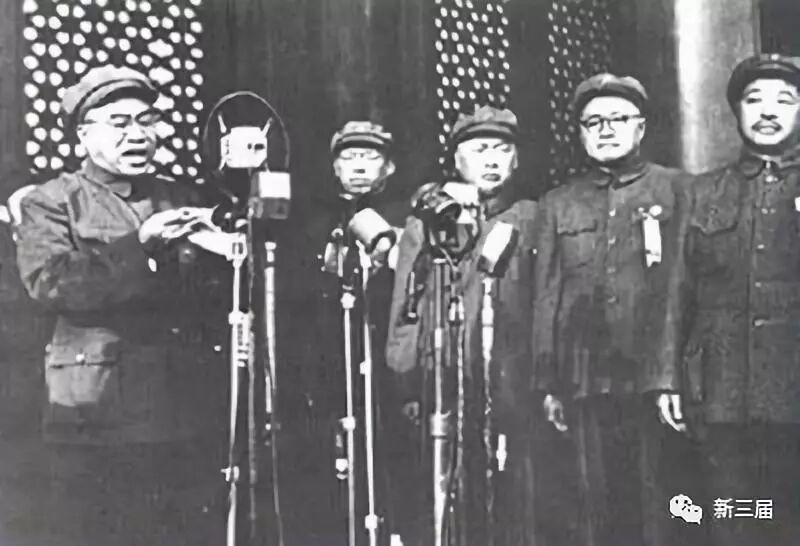l949年参加中华人民共和国开国大典。左起:朱德、罗荣桓、陈毅、刘伯承、贺龙